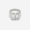 Audacieuse, sculpturale et résolument chic, la bague Simone est une pièce forte qui attire instantanément les regards. Son design travaillé allie l’éclat pur des cristaux taille baguette à la brillance du plaqué argent, créant un jeu de lumière hypnotisant à chaque mouvement.