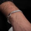 Marcello, c’est aussi un bracelet. Une pièce forte, fluide et intemporelle, pensée pour compléter la collection avec la même exigence de style et de caractère. Sa maille serrée en plaqué argent capte la lumière et habille le poignet avec justesse, sans jamais en faire trop.