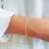 Ce bracelet reprend la maille texturée signature qui capte la lumière à chaque mouvement. Discret mais jamais banal, il apporte juste ce qu’il faut de relief pour sublimer ton poignet.