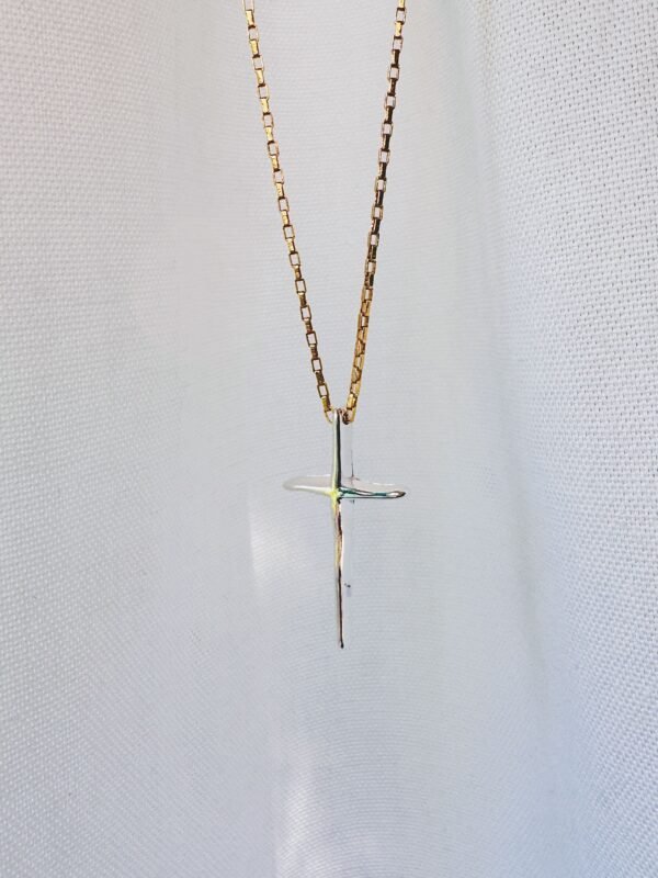 La croix, volontairement minimaliste, devient un symbole personnel. Spirituel, esthétique ou simplement stylistique, chacun y projette sa propre histoire. La chaîne en plaqué or apporte chaleur et lumière, tandis que le pendentif en plaqué argent affirme un caractère plus brut et contemporain.