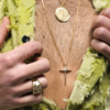 Avec sa longueur de 70 cm, Fides se porte bas, naturellement. Il structure une tenue, souligne un décolleté, s’impose sur un pull ou une chemise ouverte. Pensé comme un bijou mixte, il s’adresse à celles et ceux qui aiment les pièces chargées de sens, mais faciles à porter au quotidien.