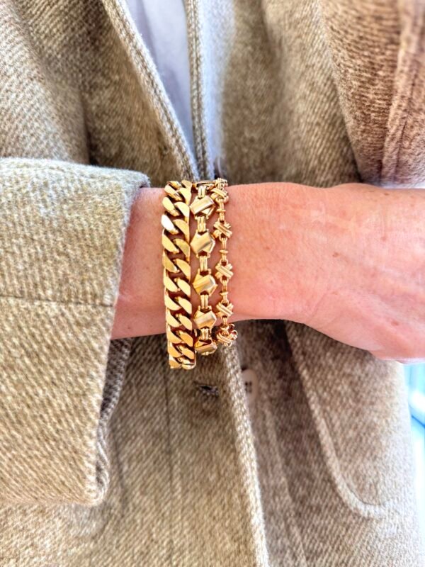 Le Folie pose la base. Sa maille large, assumée, chic sans être tape-à-l’œil, donne immédiatement du poids au poignet. C’est un bracelet qui structure et qui fait le look, même quand on ne porte que lui.