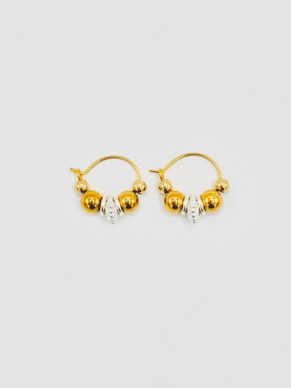 Chaque créole est composée d’un assemblage de perles rondes brillantes et de rondelles strassées ou martelées, pensées pour créer ce jeu de textures si caractéristique de la marque. Le mix doré et argenté permet de porter Venus avec tous vos bijoux sans se poser de question : or, argent, pièces texturées, pierres naturelles ou créoles plus larges. Venus fonctionne avec tout et apporte immédiatement du style.
