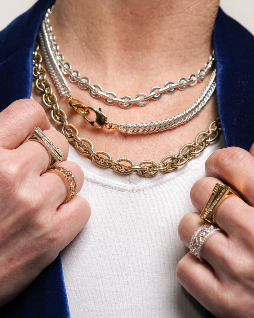 Collier mixte H/F Plaqué argent Longueur 45 cm Fermoir décliné en version dorée ou argentée Bracelet assorti disponible À porter seul ou en duo, signature Princess To Lend